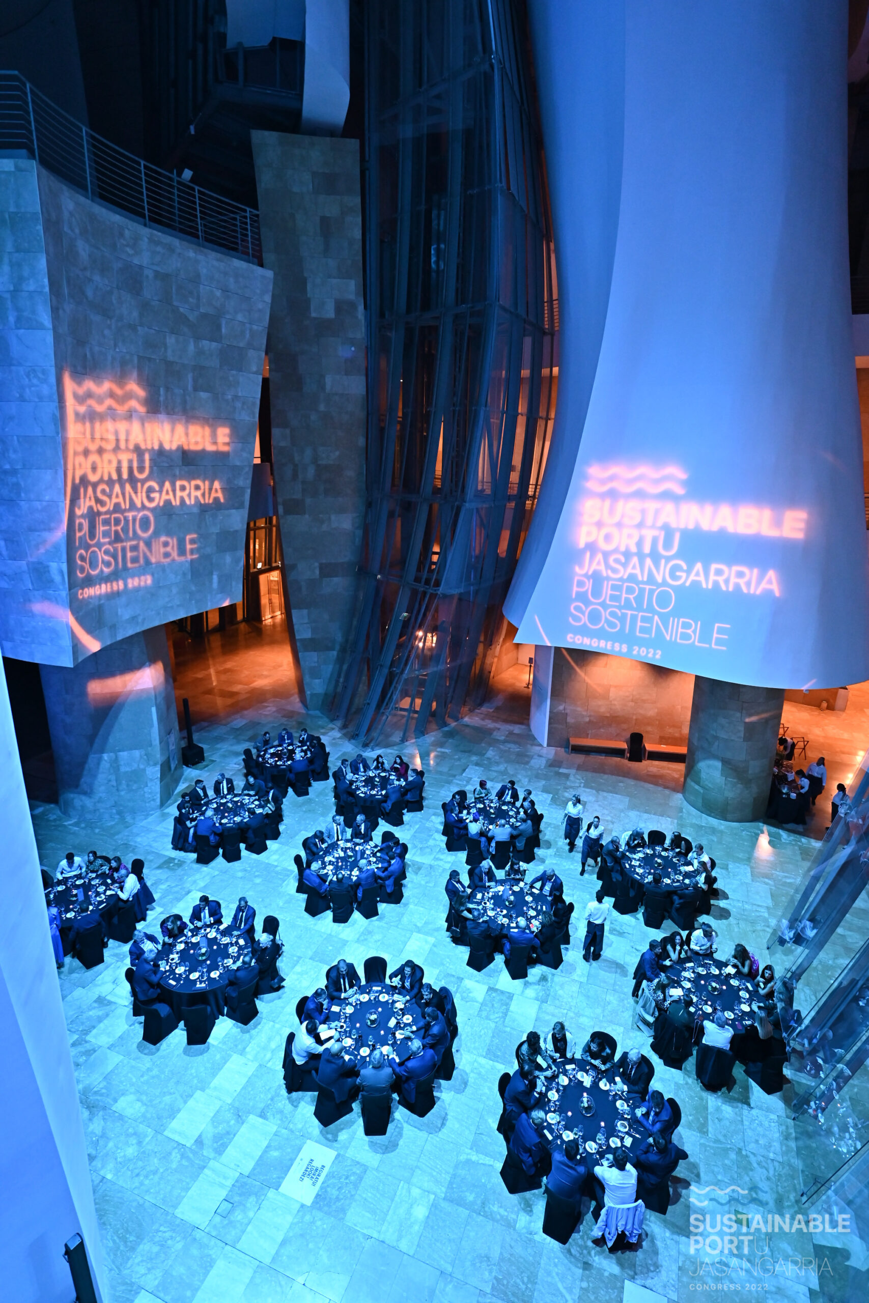 Un altre exemple que podem compartir-vos des d’Eternum Events és el “Congreso Puerto Sostenible” que vam organitzar a Bilbao, coordinant també el sopar de Gala en el Museu Guggenheim de Bilbao, un espai emblemàtic que va sorprendre a tots els assistents.