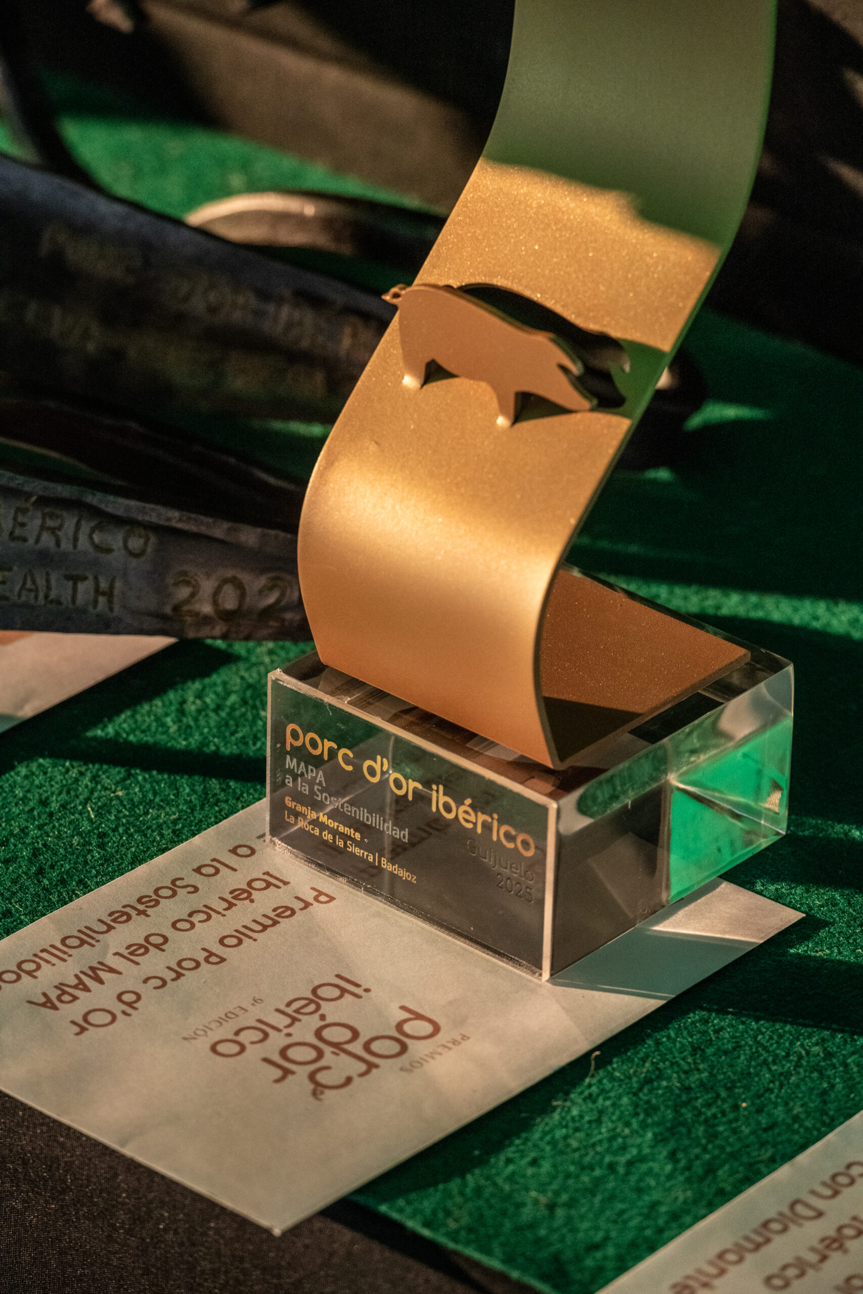 El passat 13 de juny l’IRTA va dur a terme l’organització de la 9ª Gala dels Premis Porc d’Or Ibèric, un esdeveniment de referència del sector porcí que enguany es va celebrar a Guijuelo (Salamanca), un enclavament clau en la producció porcina del nostre país. La jornada, en la que vam poder col·laborar en l’organització, va reunir més de 400 professionals del sector, entre grangers, veterinaris, treballadors i representants d’empreses i institucions. Durant l’acte es van reconèixer les millors pràctiques en benestar animal, eficiència productiva i sostenibilitat, destacant l’esforç constant del sector per millorar i innovar. L’esdeveniment també va ser un espai per compartir coneixement, generar noves sinergies i posar en valor la importància estratègica de la ramaderia porcina en l’economia agroalimentària.